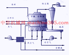 埋管流态化干燥是在常规流化床干燥和间接加热式干燥基础上发展起来的一种新型干燥技术。它将管式热交换器沉浸在流态化干燥物料中,物料脱水所需热量分别由埋管热交换器和流化用热空气提供,以较小的风量满足物料流化干燥的要求。