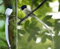 白寿带鸟,这种鸟古今少见,歷来都属於珍稀鸟种,因为与鹊科鸟类同样有长尾,所以在古代被视为与鹊同科。白寿带鸟有栗色与白色型两种,有些品种雌雄同为栗色,少数品种是雄鸟长尾而白色,雌鸟与亚成鸟是栗色而短尾,所以以歷来在绘画上常常会产生体型混淆与配色错误的情