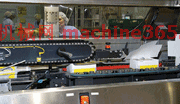 密封后的纸盒被送入自动装箱机上。四条生产线只有一条配有自动装箱机,其它三条都通过手工完成装箱。