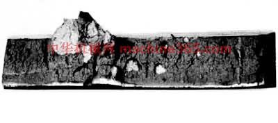 断口法﹕将金属材料摺断﹐以观察断口的组织和缺陷。这种方法对显示晶粒粗细﹑渗层厚度﹑分层﹑白点﹑裂缝等特别适用。图2 用断口法显示的钢材纵向断口上的白点