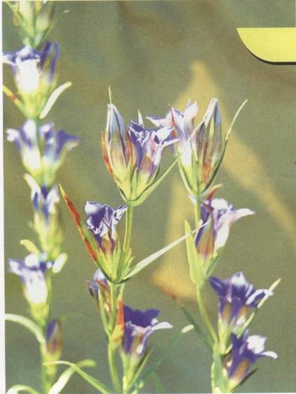 形态特征:龙胆科龙胆属多年生草本植物,高20-30厘米。根数条绳索状。茎直立,不分枝,具棱。叶对生,中部叶较大、披针形或条状披针形,长3-7.5厘米、宽0.7-0.9厘米; 上部叶条形,长3-3.5厘米,宽约0.3厘米。花1-2朵顶生,蓝紫色、长4-4.5厘米。蒴果柄长1厘米。种子条形,二端具翅。