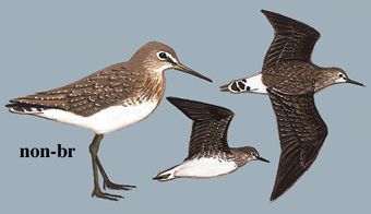 物种特征:描述:中等体型(23厘米),矮壮型,深绿褐色,腹部及臀白色。飞行时黑色的下翼、白色的腰部以及尾部的横斑极显著。上体绿褐色杂白点;两翼及下背几乎全黑;尾白,端部具黑色横斑。飞行时脚伸至尾后。野外看黑白色非常明显。与林鹬区别在近绿色的腿较短,外形较矮壮,下体点斑少,翼下色深。 虹膜-褐色;嘴-暗橄榄色;脚-橄榄绿色叫声:响亮如流水般的tlooeet-ooeet-ooeet,第二音节拖长。 分布范围:繁殖于欧亚大陆北部;冬季南迁远及非洲、印度次大陆、东南亚、北婆罗洲及菲律宾。 分布状况:仅于新疆西部喀什及天山地区有过繁殖记录,迁徙时常见于中国大部地区,越冬于塔里木盆地,西藏南部的雅鲁藏布江流域,中国东部大多数省份,长江流域及北纬30°以南的整个地区。极少至沿海。 习性:常单独活动,喜小水塘及池塘、沼泽地及沟壑。受惊时起飞,似沙锥而呈锯齿形飞行。