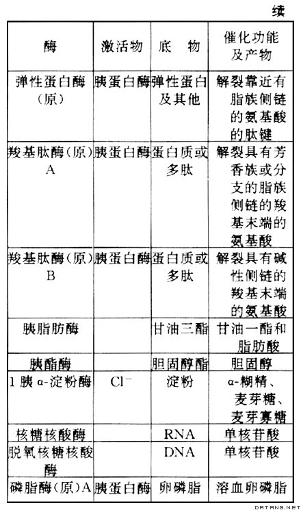 胰 pancreas 脊椎动物及部分无脊椎动物中兼具外分泌和内分泌两种功能的复合腺体。又称胰腺。外分泌部分由腺泡和连通肠腔的导管组成,腺泡分泌多种消化酶,导管上皮细胞分泌碳酸氢盐、钠、钾、氯等离子和水,合称胰液。经导管进入十二指肠的胰液可消化糖、脂肪和蛋白质,是机体最重要的消化液;内分泌部分由胰岛所组成。胰岛分泌多种激素,如胰岛素、胰高血糖素、胰多肽和生长抑素等。前两种激素在调节糖、脂肪、蛋白质的代谢,特别对维持正常血糖水平起着十分重要的作用,后两种激素的生理功能尚不十分清楚。人胰横卧于腹后壁和胃后方。分头、体、尾3部分:胰头位于十二指肠弯内,胰体占据胰中间的大部,胰尾延伸到脾。外被结缔组织,膜深入胰内,将胰分成许多小叶。胰导管横贯于胰的全长,在总胆管附近开口于十二指肠,或与总胆管汇合入肠。胰岛的毛细血管经小静脉后又进入围绕腺泡的毛细血管,因此,靠近胰岛腺泡的血液含有高浓度的胰岛细胞所释放的激素。支配胰的神经有迷走神经、交感神经和肽能神经。 胰腺兼具内、外分泌功能,在内、外分泌部分之间存在着胰岛-外分泌腺门脉系统 。胰岛素通过这一系统流向外分泌部分,促进胰酶合成,从而使胰腺的内、外分泌腺的功能紧密联系起来。 胰的外分泌 在哺乳动物,胰的外分泌部分分泌胰液。主要在消化期分泌。胰液中含水、无机物和有机物。人胰液中碳酸氢盐的最高浓度为140毫当量/升 。在生理限度内,胰液中HCO3-的浓度随着分泌速度加快而增加 。HCO3-浓度升高时,Cl-浓度将相应地下降,因此,胰液中的负离子的总浓度相对恒定,几乎与血浆等渗。碳酸氢盐不仅能中和胃酸,以保护肠粘膜免受强酸侵蚀;它还造成肠内适宜的pH环境,保证胰液和肠液中的许多酶在碱性环境中发挥作用。 胰液中有机成分主要有白蛋白、球蛋白和酶蛋白等。蛋白质浓度介于0.1%~10%。当胰酶分泌增加时,胰液中蛋白质浓度就升高。胰液含有消化糖、脂类、蛋白质三种主要营养物的酶,绝大多数以酶原形式分泌,需有激活物使其转变成酶,才能对底物发挥作用(见表)。所以,一般在正常情况下,胰蛋白酶不会消化胰组织本身。