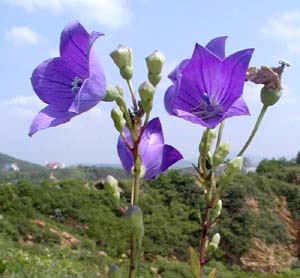 桔梗花的颜色鲜蓝,形如悬钟,既是6至9月间的一种美丽花卉,又是变种常用的中药。吉林延边地区朝鲜族人民还把桔梗花的嫩叶作蔬菜食用。