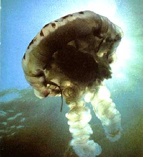 在那蔚蓝色的海洋里,栖息着许多美丽透明的水母,它们一个个像降落伞似地漂浮在大海里,婀娜多姿的容貌使人赞叹不绝。天蓝色的帆水母背部竖着一个透明的“帆”,借着海风和海浪,像一只小船在海中颠簸。海月水母具有伞样的钟状体,浮在海面如同皓月坠入海中,十分美丽。形如僧帽的僧帽水母,其触手甚长,上面布满了无数小刺胞,刺胞的毒液与眼镜蛇的毒液相似。还有那剧毒的立方水母,又称“海黄蜂”。在海洋里,见到这些水母可千万别动手触摸,否则会被其带毒的刺胞蜇伤,甚至丧命。