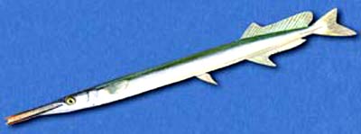 大圆颚针鱼体呈长圆柱形,稍侧扁,一般体长1米左右、体重150~300克,体背、腹缘平直且平行延伸,尾部渐细,尾柄两侧各有一隆起脊。上下颌均延长呈喙状,两颌牙强大,上颌牙向前倾斜。眼大而明亮。体被薄而小的圆鳞,排列不规则。侧线位低,近腹缘。体背侧蓝绿色,腹部银白色,体背中央有一黑色纵带直达尾鳍前,带的两边各有一条与其平行的黑色细线,延伸至背鳍前方。背鳍在身体的尾部,其起点与臀鳍相对,后部鳍条较长;胸鳍位高;尾鳍叉形,上叶短、下叶长。各鳍均呈浅绿色。分布于印度洋和太平洋。我国仅南海有一定产量。