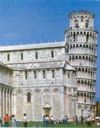 比萨主教堂,它的钟塔和洗礼堂,是意大利中世纪最重要的建筑群之一。它是为纪念1062年打败阿拉伯人,攻占巴勒摩而造的。