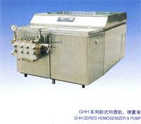 按结构型式分为立式整体型均质机和卧式组合型均质机。前者一般适用于中小型设备(功率在45kw以下);后者适用于大型设备(功率在45kw以上)。目前国内大多数厂家生产的都是立式整体型均质机。这种型式结构紧凑,外形美观占地面积小。但对大型设备而言,稳定性就成了主要的问题。所谓卧式组合型均质机指的是电机、减速箱、曲轴箱、润滑站等相对独立成块,并分布在同一水平面上,通过皮带(轮)、联轴器、油管等连成一体。整机重心低、运转平稳、检修方便。1995年5月为给世界上最著名的化工企业之一德国BASF公司配套高质量的大吨位均质机,我们研制了国内第一台大型卧式均质机。在此基础上通过几年的实践,该产品形成十几个规格的系列,最大功率达150kw(对应流量20t/h,压力22Mpa)。经上海科技情况所计算机联机检索证明为国内首创,技术水准接近国际先进水平。