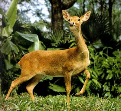 坡鹿别名海南坡鹿、泽鹿,属于鹿科。坡鹿体型与梅花鹿相似而稍小,但颈、躯体和四肢更为细长,显得格外矫健。雄鹿具角,第一眉叉自基部向前侧平伸出,与主干几乎成弯弓形。毛被黄棕、红棕或棕褐色,背中线黑褐色。背脊两侧各有一列白色斑点,仔鹿的斑点尤为明显,成年鹿冬毛斑点不明显。