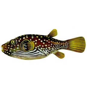 | 介绍: 鲀科 Arothron hispidus (Linnaeus) 体无鳞,被小钝刺,小刺有时埋于皮下不显著,但在肛门前方常有一群较大的鱼屯刺。鼻瓣为两分叉的皮质突起。体背侧有许多白色圆点,腹部具若干条白色纵纹。暖水性有毒鱼类。体长一般100~210毫米,大者体长可达500毫米左右。我国在海南岛上海和西沙群岛一带可捕到。 |