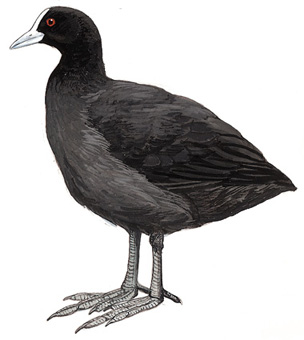 物种特征:描述:体大(40厘米)的黑色水鸡。具显眼的白色嘴及额甲。整个体羽深黑灰色,仅飞行时可见翼上狭窄近白色后缘。 虹膜-红色;嘴-白色;脚-灰绿。 叫声:多种响亮叫声及尖厉的kik kik。 分布范围:古北界、中东、印度次大陆。北方鸟南迁至非洲、东南亚及菲律宾越冬;鲜至印度尼西亚。也见于新几内亚、澳大利亚及新西兰。 分布状况:亚种atra为中国北方湖泊及溪流的常见繁殖鸟。大量的鸟至北纬32°以南越冬。 习性:强栖水性和群栖性;常潜入水中在湖底找食水草。繁殖期相互争斗追打。起飞前在水面上长距离助跑。