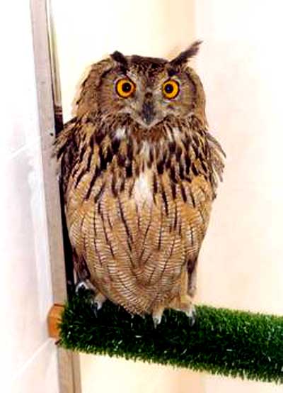 雕鸮体型80厘米。体重1000~2200克。夜行性猛禽。中国体型最大的猫头鹰。除繁殖季节成对外,平常单独活动。听觉和视觉在夜间异常敏锐。白天隐蔽在茂密的树丛中休息。不能消化的鼠毛和动物骨头会被雕?^吐出,丢弃在休息处周围,称为食团。雕枭在夜间常发出“狠、呼,狠、呼”叫声互相联络,感到不安时会发出响亮的“嗒、嗒”声威胁对方。以各种鼠类为主要食物。被誉为“捕鼠专家”。在石崖洞隙里产卵,每窝产3~5枚白色的卵。边产卵边孵化,孵出后的小猫头鹰大小悬殊。在食物不足的季节,体型小的猫头鹰会被体形大的小猫头鹰啄死吃掉。这种看似残酷的习性能保证只有最强壮的个体能够存活。属于鸟纲?^形目?|?^科。分布在我国云南省各地,中国各地区均有分布。