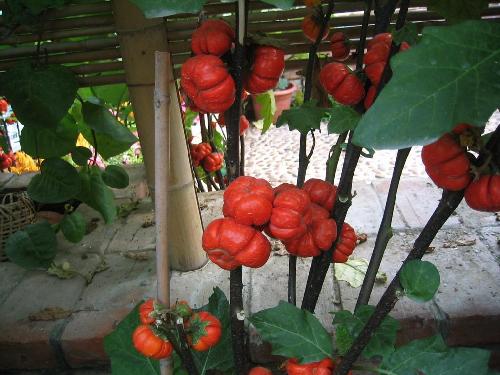 美洲红茄是一年生草本植物,一般株高30—40厘米,叶长圆形,每棵树能挂果几十个至一百多个。果柄牢固,果面坚韧性强,果具有长期不变色、不变形、不烂果、不掉落的特性;观赏期长,是盆栽及插花配景的好素材。 |