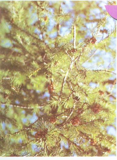 形态特征:松科落叶松属落叶乔木植物。高15-20米。小枝不下垂。叶在长枝上螺旋状散生,在短枝上簇生状,倒披针状条形,扁平,长2-4厘米。球果卵圆形或长卵圆形,熟前紫褐色,熟时褐色或微带紫色,长2-4厘米,直径1-2厘长; 种鳞三角状卵形、近卵形或斜方形,长1.5-1·8厘米苞鳞紫红色,窄三角状卵形,顶端尾状渐尖。种子连翅长1.5厘米。