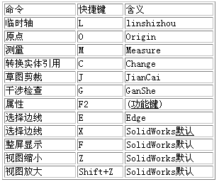 笔者在使用SolidWorks软件的过程中,根据自己的使用习惯,总结出了一套易用易记、行之有效的快捷键,具体设置如表1所示。