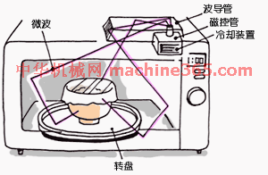 ⑤玻璃转盘——装好食物的容器放在转盘上,加热时转盘转动,使食物烹饪均匀;