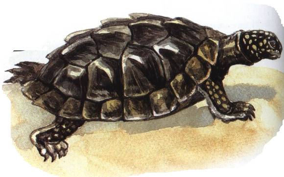 背甲长约10-12厘米,最大者约20厘米;宽约15厘米。头、颈的侧面有明显的黄色线状斑纹。背甲上有条纵向隆起的脊,后缘不呈锯齿状。背面褐色或黑色,有放射状的花纹;腹面略带黄色,均有暗褐色斑纹。