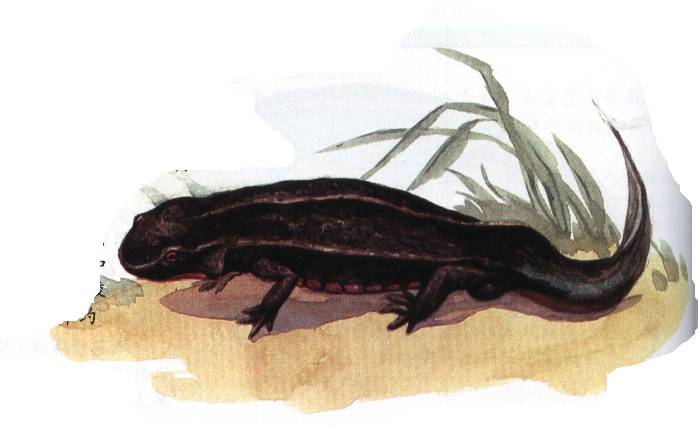 体全长约20厘米左右。头部局平,犁骨齿列 "Ω"形。四肢细弱而长,躯干呈圆柱状,尾侧扁。皮肤粗糙有疣。体侧有腺质棱脊,背正中有脊棱,背面瘰粒分散均匀,沿体两侧的略大而明显。腹面橘红色显著。