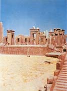 珀赛玻里斯宫(Palaus of Persepolis)(是其中最著名的一所。公元前518-前460年,波斯王大流士和泽尔士所造的宫殿。建筑群倚山建于一高15米,面积460×275米的大平台上。入口处是一壮观的石砌大台阶层,宽6.7米,邻近两侧刻有朝贡行列的浮雕,前有门楼。中央为接待厅和百柱厅,东南面为宫殿和内宫,周围是绿化和凉亭等,布局整齐但无轴线关系。伊朗高原盛产硬质彩色石灰岩,再加上气候干燥炎热,所以建筑多为石梁柱结构,外有敞廊。