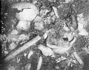 北京人头盖骨出土时的现场。