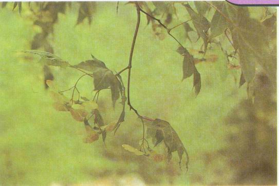 形态特征 械树科械属乔木植物,高6-10米。树皮灰色或灰褐色。叶纸质,掌状分裂,长4.5-10厘米,宽3-7厘米,裂片狭长圆形或卵状三角形,顶端尾状渐尖。圆锥状总状花序长达8厘米,5-6月开花,花淡绿黄色,雌雄同株;萼片4,卵形;花瓣4,倒卵形。翅果长2-2.5厘米,两翅近水平状开展呈钝角,翅幼时紫红色,小坚果近圆形。