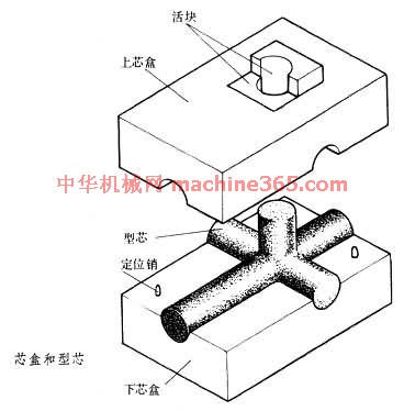 将芯砂製成型芯的工艺装备。可由木材﹑塑料﹑金属或其他材料製成。设计芯盒时﹐根据型芯的特点﹑生產批量和生產条件等因素来确定芯盒材料及其结构形式。图
