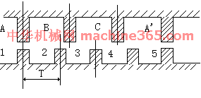 0、1/3て、2/3て,(相邻两转子齿轴线间的距离为齿距以て表示),即A与齿1相对齐,B与齿2向右错开1/3て,C与齿3向右错开2/3て,A'与齿5相对齐,(A'就是A,齿5就是齿1)下面是定转子的展开图: