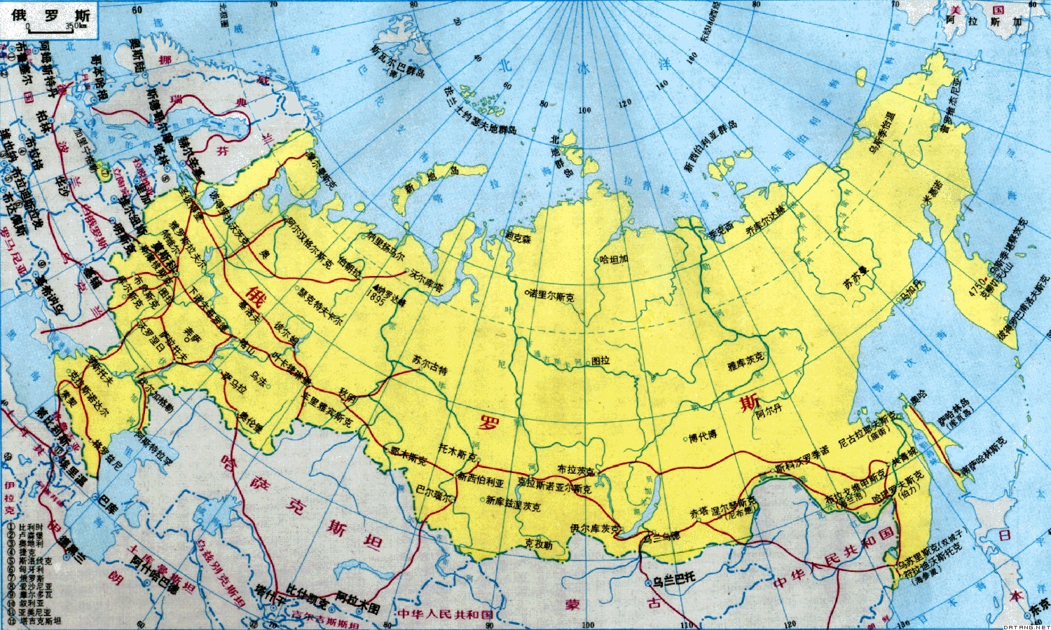 俄罗斯 Russia 位于欧洲东部和亚洲北部的联邦制国家。又称俄罗斯联邦。面积1707.5万平方千米,为世界上领土面积最大的国家。人口1.486亿(1993),有120多个民族,俄罗斯人占82%,其他有乌克兰人、鞑靼人、楚瓦什人、巴什基尔人、白俄罗斯人、日耳曼人、犹太人等。俄语为官方语言。主要宗教为俄罗斯东正教,其他还有基督教、犹太教和伊斯兰教等。首都莫斯科。