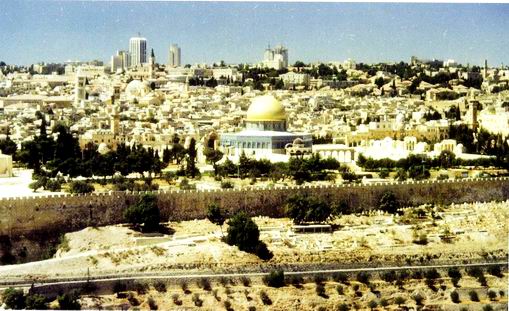 冷的土地,人类自此登上神的圣殿,心灵的朝圣旅程由加利利起伏的山地延至犹地亚和内盖夫沙漠弯曲的沟壑,从地中海蔚蓝的海水延伸至荒凉、广袤的叙利亚沙漠。耶路撒冷享有世间惟一的殊荣,犹太教徒、基督教徒和穆斯林均视其为圣城,它象一块磁石,吸引着来自世界各地的犹太教,基督教和穆斯林朝圣者。没有人可以抗拒耶路撒冷,这片狭小的丘陵之地,从未有过埃及和希腊文明享有的帝国辉煌与强大的经济,然而在心灵的领域,这里是相仰的人惟一的寄所,是至高者居住的圣殿,是无尚荣耀的归属。