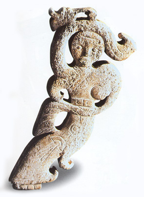 玉料经侵蚀后呈灰白色并有损伤。舞姿优美,半圆雕形式为当时罕见之技法,也是研究汉代舞蹈的珍贵资料。