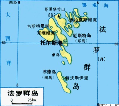 | 法罗群岛 Faeroe Islands 位于北大西洋中北部的丹麦王国自治地区。面积1399平方千米。人口约5万,几乎全部是斯堪的纳维亚人的后裔法罗人。主要语为法罗语,通用丹麦语。多数人信奉基督教。首府托尔斯港。