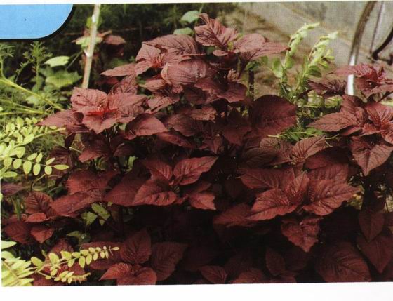 形态特征:苋科苋属一年生草本植物。高80厘米至1.5米。茎通常分枝。叶卵状椭圆形至披针形,长4-10厘米,宽2-7厘米,除绿色外,常呈红色、紫色、黄色或绿紫杂色。花单性或杂性,密集成簇,花簇球形,腋生或密生成顶生下垂的穗状花序。胞果矩圆形,盖裂。