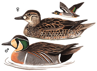 物种特征:描述:雄鸟:中等体型(42厘米),头顶色深,纹理分明的亮绿色脸部具特征性黄色月牙形斑块。多斑点的胸部染棕色,两胁具鳞状纹似绿翅鸭。肩羽形长,中心黑而上缘白。翼镜铜绿色,臀部黑色。雌鸟:似白眉鸭及绿翅鸭,但体略大且嘴基有白点;脸侧有白色月牙形斑块。 虹膜-褐色;嘴-灰色;脚-灰色。 叫声:雄鸟春季发出深沉的wot-wot-wot似笑叫声。雌鸟发出呱呱的低叫声。 分布范围:繁殖于东北亚,越冬于中国、朝鲜及日本。 分布状况:全球性易危(Collar et al., 1994)。繁殖于中国东北的小型湖泊。在华中和华南的一些地区越冬,偶见于香港。此鸟的种群数量在近20年急剧下降。 习性:喜结大群并常与其他种混群。取食于水面及稻田。栖于湖泊、河口地带。