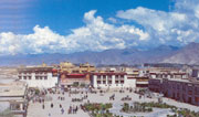 据史料记载,最早的西藏寺庙是建于唐贞观十五年(641年)至唐永徽六年(650)之间的大昭寺。七世纪中叶,吐蕃王在天尊公主和文成公主影响下,象许多统治者一样出于多种原因而开始信奉佛教,并营造了大、小昭寺。大昭寺作为平川式寺院建筑的代表,其周围环绕经堂、佛殿、回廊、院落的整体结构形式,以其不对称的排列,明显区别于汉式寺院的整体结构。虽然大昭寺的主殿位于寺院整体结构的中轴线上,但是其高于汉式寺庙的建筑空间及其空间结构和构造方式,都表明了藏族寺院建筑的特色。而主殿外观中的单檐歇山式绝对对称的屋顶又反映了藏式建筑从一开始就受到汉族建筑传统的影响。建造大昭寺的缘由已经表明了初期即已存在的汉、藏、印度建筑风格的相互融合,同时也表明了藏式寺院的风格在公元七世纪中叶即已基本确立。