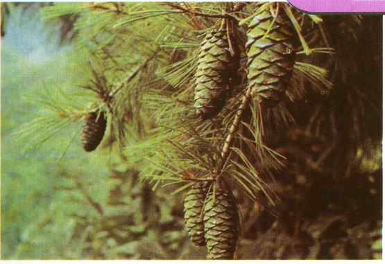 形态特征:松科松属常绿乔木植物,高达30米以上,胸径达1米。树皮裂成块状。针叶5针一束,长8-15厘米,直径1-1.5毫米。球果圆锥状长卵形,长10-20厘米,直径5-8厘米,成熟时黄色或褐黄色,种鳞张开,种子脱落,果梗长2-3厘未。种子倒卵圆形,无翅。